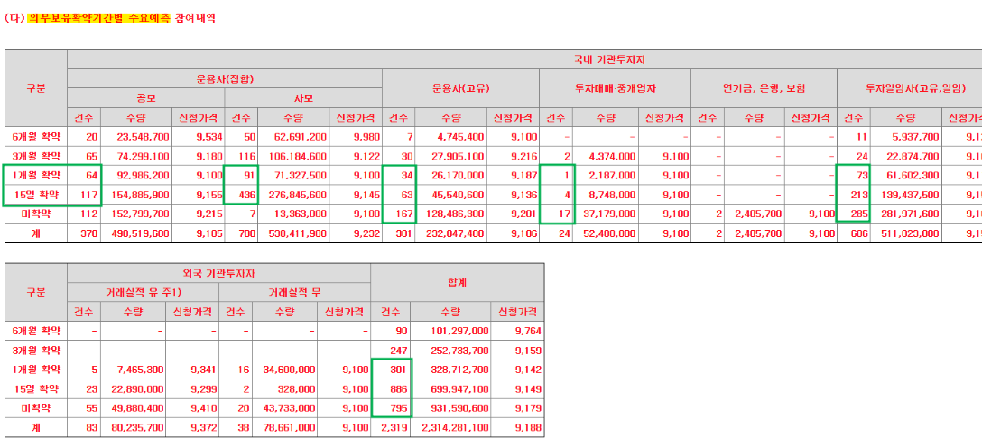 하지만 확약기간은 아쉽습니다. 15일~1개월 단기 확약이 압도적으로 많아요.