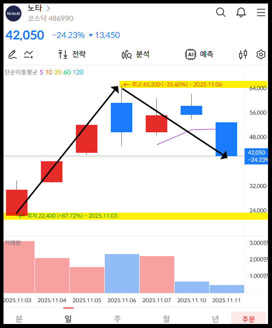 오늘은 노타 주가를 이렇게 정리해보겠습니다👇