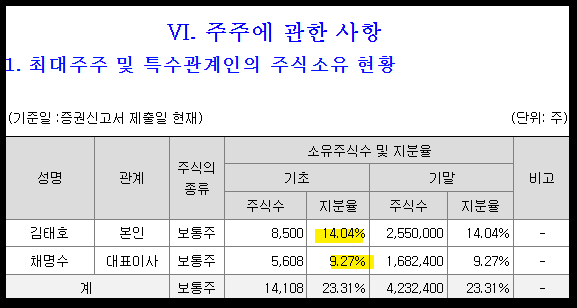 지분이 너무 낮으면 경영권 분쟁 우려가 있고, 경영진의 ‘오너십’이 약해진다는 점에서 투자자 입장에선 아쉬운 대목입니다.