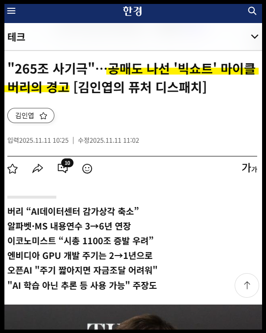 미국에서도 마이클 버리 같은 전설들이 AI 버블을 언급하고 있고요.