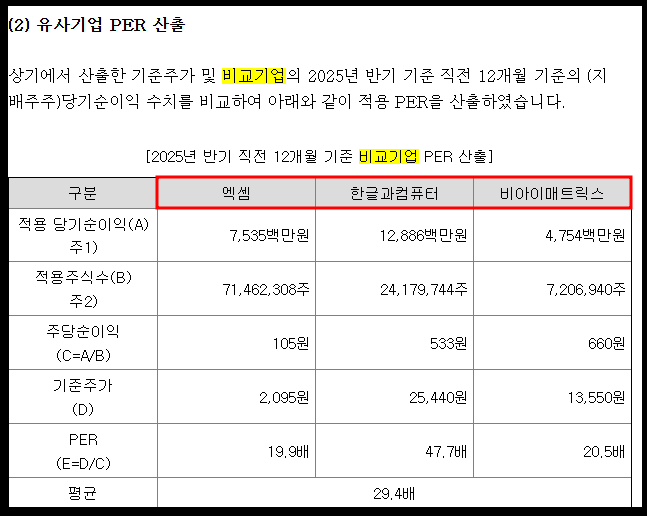 노타는 엑셈, 한글과컴퓨터, 비아이매트릭스를 비교기업으로 설정했습니다.