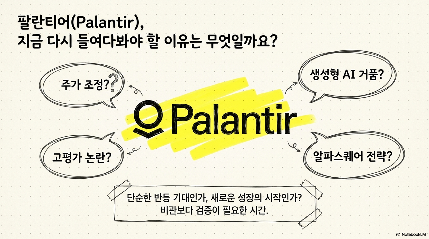 주가가 크게 오른 뒤 조정을 받는 종목은 종종 이야기와 숫자 중 하나만 좋아도 버티지만, 팔란티어는 둘 다 요구받는 단계에 와 있다. 그래서 이번 구간은 비관보다 검증의 시간으로 보는 편이 맞다. 기대를 버리기보다 기대를 다시 분해해 보는 접근이 더 유효하다. 이 과정에서 투자 기준도 더 선명해진다. 성급한 확신보다 확인이 앞서야 한다. 숫자의 지속성이 중요하다. 그래서 더 천천히 봐야 한다. 더 꼼꼼히 봐야 한다.