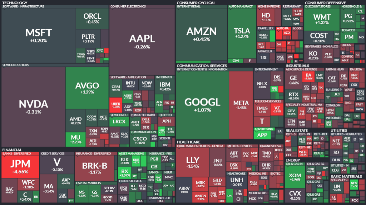 다우지수는 JP모건 영향으로 하락 전환 ->26년 비용이 1050억 달러로 시장 전망 크게 상회 예상