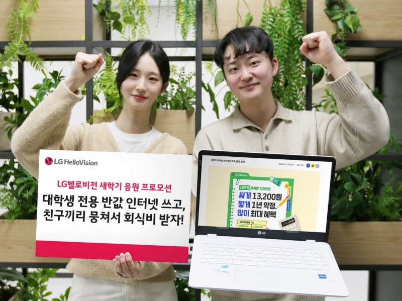 [파이낸셜뉴스] LG헬로비전은 오는 3월 말까지 직영몰을 통해 ‘새학기 응원 프로모션’을 시행한다고 23일 밝혔다. 이번 프로모션은 대학생 전용 초고속 인터넷 상품인 광랜 아카데미(1년 약정, 월 1만 3200원)’가 주력이다. 타사보다 반값 저렴한 1년 단기약정 인터넷 상품이다. 인터넷 장기계약이 필요할 경우 직영몰 단독 인터넷 상품인 ‘와이파이 전용 기가 인터넷(3년 약정, 월 1만 7000원)’도 마련돼 있다. 친구들과의 회식비 지원 등 특별한 새학기 응원 혜택도 더했다. LG헬로비전 직영몰 프로모션을 통해 광랜 아카데미 등 자사 방송∙인터넷 상품에 가입하면 올리브영 상품권 최대 5만원권(선착순 500명)이 제공된다. 2명 이상 팀으로 함께 가입하면 명륜진사갈비 상품권 10만원권(선착순 30팀, 인당 최대 5만원씩)도 추가 증정한다. 프로모션 참여방