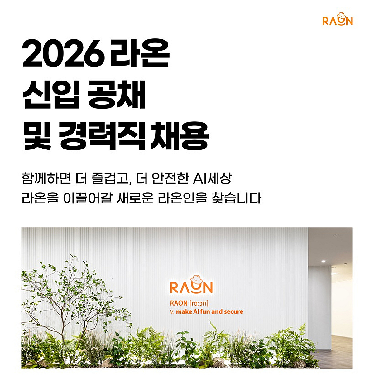 라온시큐어가 에이전틱AI 시대를 함께 이끌어갈 우수 AI·보안 인재 영입에 나섰다. AI 보안·인증 플랫폼 기업 라온시큐어(대표 이순형·이정아)는 에이전틱AI 시대를 선도할 신입사원 및 경력직 공개 채용을 실시한다고 26일 밝혔다. 라온시큐어는 최근 'AI연구소'를 'AI사업본부'로 확대 개편하고 에이전틱AI 기반 보안 자동화 플랫폼의 연내 출시를 예고하는 등 AI 중심으로 사업 체제를 전면 전환했다. 에이전틱AI의 신원과 권