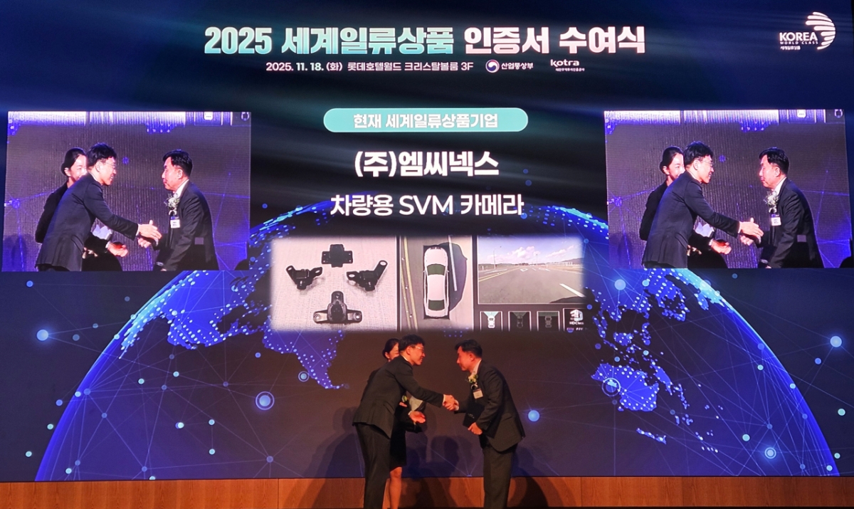 엠씨넥스는 차량용 SVM(Surround View Monitoring) 카메라가 산업통상자원부와 대한무역투자진흥공사(KOTRA)가 주관하는 '2025년 세계일류상품'으로 선정됐다고 18일 밝혔다. 엠씨넥스는 이날 서울 잠실 롯데호텔월드에서 열린 '2025년 세계일류상품 인증서 수여식'에서 인증서를 수여 받았다. 세계일류상품은 산업통상자원부와 KOTRA가 매년 글로벌 시장에서 경쟁력을 갖춘 국내 제품을 선정해 인증하는 공식 제도다. △세계 시장 점유율 5위 이내 △시장 규모 연간 5000만달러(약 731억원) 이상 등 엄격한 선정 기준을 충족해야 하며, 현재 기준을 충족한 현재 세계일류상품과 향후 7년 내 진입 가능성을 인정받는 차세대 세계일류상품으로 구분된다. 이 제도는 우리 기업의 글로벌 시장 입지 강화를 위해 대표 수출상품을 육성하기 위해 운영된다. 엠씨넥스가 이번에 인증받은 차량용 SVM 카메라는 차량 전방, 후방, 좌우측면에 장착된 카메라로부터 영상을 수집해 주변 상황을 36...
