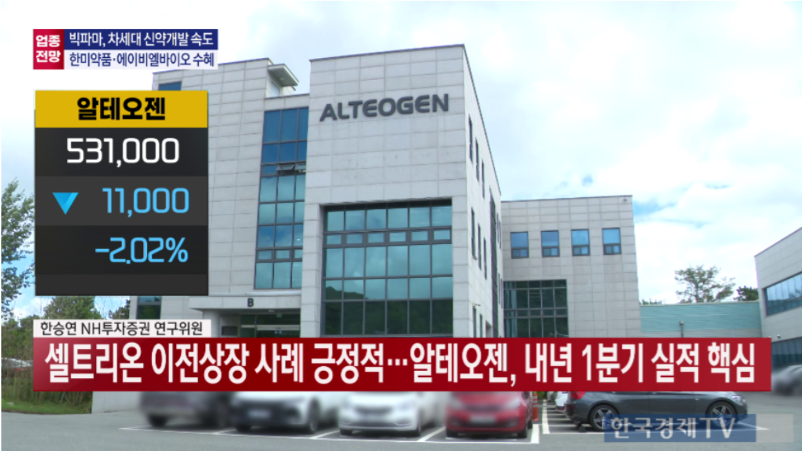 한승연 NH투자증권 연구원은 2일 한국경제TV에 출연해 "이르면 내년 2분기 말, 늦어도 3분기쯤 알테오젠의 코스피 이전 구도가 가시화될 수 있다"며 "시장에서는 2017년 셀트리온의 코스피 이전 상장 당시 약 6개월 동안 주가가 160%가량 급등했던 사례를 참고하고 있다"고 설명했다. 한 연구원은 "주주들의 전반적인 분위기를 보면 코스닥에서 코스피로 이전 상장해야 한다는 데에는 대체로 공감하고 있는 것으로 파악된다"고 말했다. 다만 "코스피 이전은 내부 통제 시스템 보완과 거래소 심사 등 절차가 필요해 시점은 다소 지연될 수 있다"고 덧붙였다.그러면서 "알테오젠 역시 실적 모멘텀이 중요한 시점에 와 있다"며 "특히 내년 1분기 실적이 코스피 이전 기대감과 맞물려 중요한 분기점이 될 것"이라고 내다봤다.한 연구원은 "파트너사 머크가 먼저 실적을 공개할 예정인데, 시점은 4월 말쯤으로 예상된다"며 "이때를 전후해 알테오젠 주가 변동성이 커질 수 있는 구간이 나타날 수 있다"고 전망했다.● 핵심 포인트