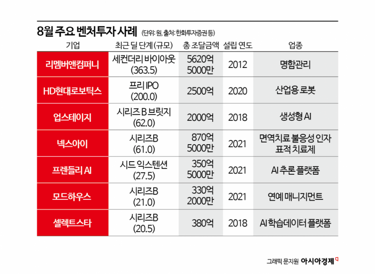 μ§μμ΄ λ·λ°μΉ¨λλ κ°μ΄λ°, μΈκ³΅μ§λ₯(AI) λΆμΌκ° μλμ μκΈ μ§μ€μ μ΄λλ©° λ²€μ²ν¬μ μ¬λ¦¬λ₯Ό λμ΄λ¦¬κ³ μλ€. 8μΌ ννν¬μμ¦κΆμ λ°λ₯΄λ©΄ 8μ κ΅λ΄ λ²€μ²ν¬μ κΈμ‘μ μ½ 1μ‘°μμΌλ‘ μ§κ³λΌ, μ§λ 7μ(μ½ 8000μ΅μ)μ μ΄μ΄ νλ μΆμΈλ₯Ό μ΄μ΄κ°λ€. ν¬μκΈμ μΈκ³΅μ§λ₯(AI)Β·λ₯ν