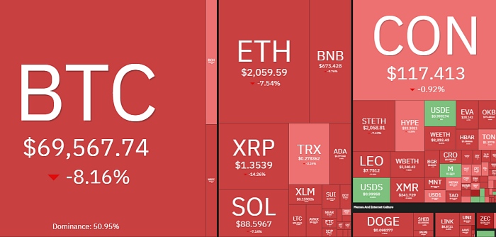 [๋์งํธํฌ๋ฐ์ด AI๋ฆฌํฌํฐ] ์ํธํํ ์์ฅ์ด ์ ๋ก ์๋ ๊ธ๋ฝ์ธ๋ก ์ ํ๋๋ค. ์ฝ์ธ360์ ๋ฐ๋ฅด๋ฉด 5์ผ ์คํ 10์ 40๋ถ ๋นํธ์ฝ์ธ(BTC)์ 6๋ง9567๋ฌ๋ฌ์ ๊ฑฐ๋๋๋ฉฐ ์ ์ผ ๋๋น -8.16% ๊ธ๋ฝํ๋ค. 6๋ง9000๋ฌ๋ฌ์ ์ด ๋ถ๊ดด๋ ๊ฒ์ 2024๋